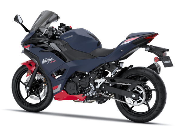 Bez ohledu na to, z jakého úhlu se na Ninja 500 díváte, její charakteristická přední část a elegantní, plynulé linie jasně ukazují, že se jedná o člena rodiny Ninja s vzhledem velkého motocyklu inspirovaným závody. Tvar karoserie s plným kapotováním podporuje pocit jednoty s jezdcem a pomáhá mu cítit se s motocyklem jako jedno.