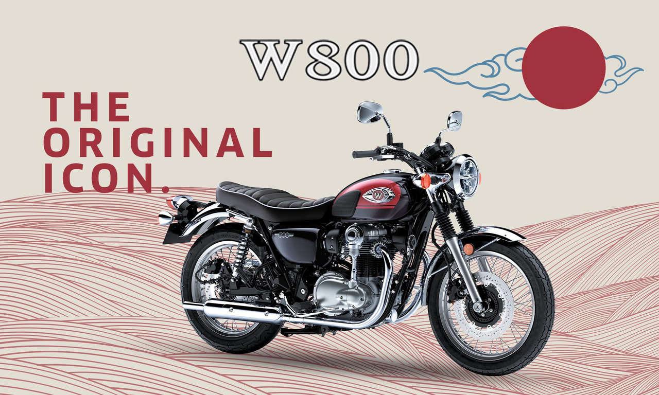 W800, nejnovější člen padesátileté dynastie Kawasaki W, s důrazem na detail a úrovní technického mistrovství, které má jen málo strojů. Od jistého a snadného ovladatelnosti až po evokativní vintage jízdní vlastnosti je W800 evolucí autentické originální ikony, která oživuje minulost v současnosti.