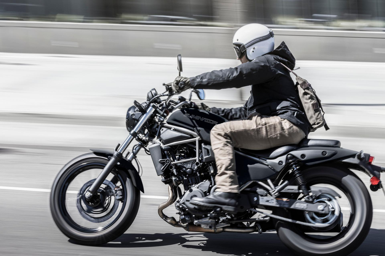 Paralelní dvouválec modelu Eliminator nabízí silný točivý moment v nízkých otáčkách, což výrazně prospívá ovládání a manévrovatelnosti při nízkých rychlostech a přispívá k bezproblémové každodenní jízdě. Při rychlostech na dálnici je díky silnému výkonu a lineární odezvě patrný jeho původ v řadě Ninja.