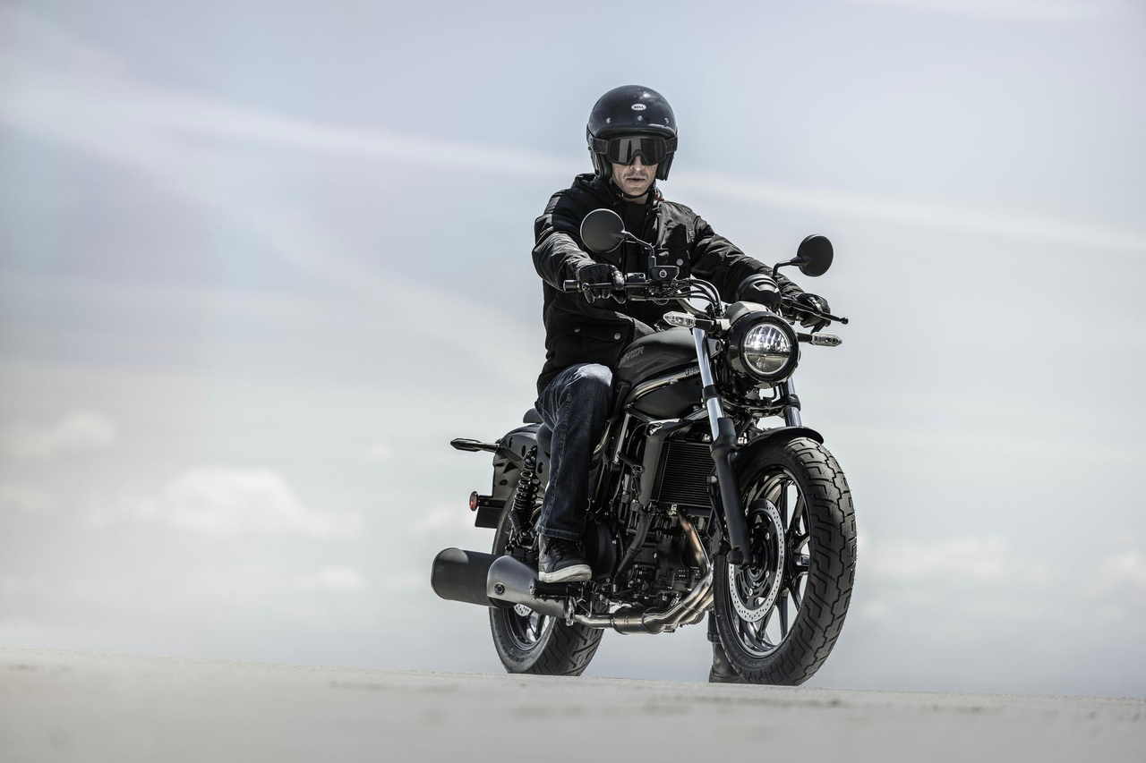 Eliminator nabízí přirozenou jízdní pozici, která vyhovuje široké škále jezdců, a vzbuzuje důvěru od okamžiku, kdy na něj nasednete. Jeho nízká hmotnost a dobré vyvážení hmotnosti usnadňují zvedání motocyklu z bočního stojánku a přispívají k manévrovatelnosti při nízkých rychlostech. Díky své vysoké přístupnosti a bezproblémovému charakteru je Eliminator ideálním partnerem pro každodenní jízdu.
