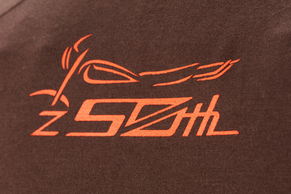 - Flockový potisk v oranžové barvě Z-model na přední straně