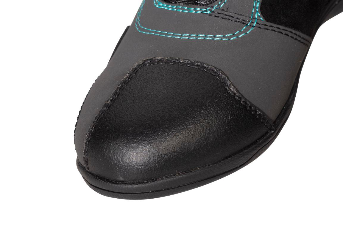 Pro větší bezpečnost je systém zapínání na tkaničky a suchý zip vybaven také garáží na tkaničky, která úhledně zajišťuje konce tkaniček a zabraňuje jejich zachycení kolem motocyklu.
