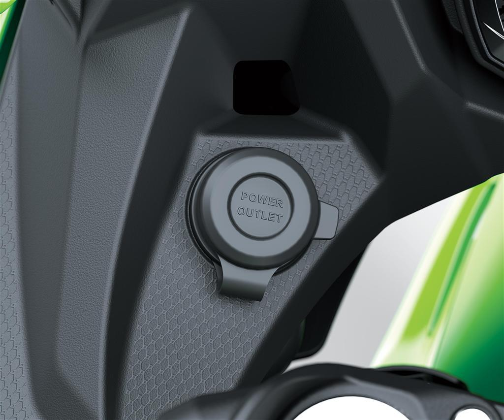 12V DC zásuvka s krytkou pro montáž na palubní desku. Připojuje se přímo ke kabelovému svazku motocyklu.