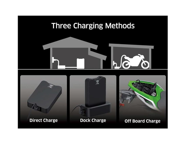 Při připojení k motocyklu pomocí sady nabíjecích kabelů může jedna nabíječka nabíjet obě baterie současně díky systému správy baterií v motocyklu.