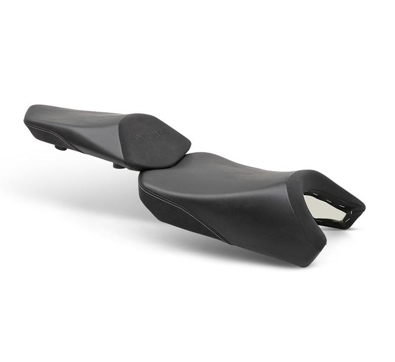 - Kryt sedla spolujezdce je vyroben z kontrastního materiálu a prošitý logem Kawasaki