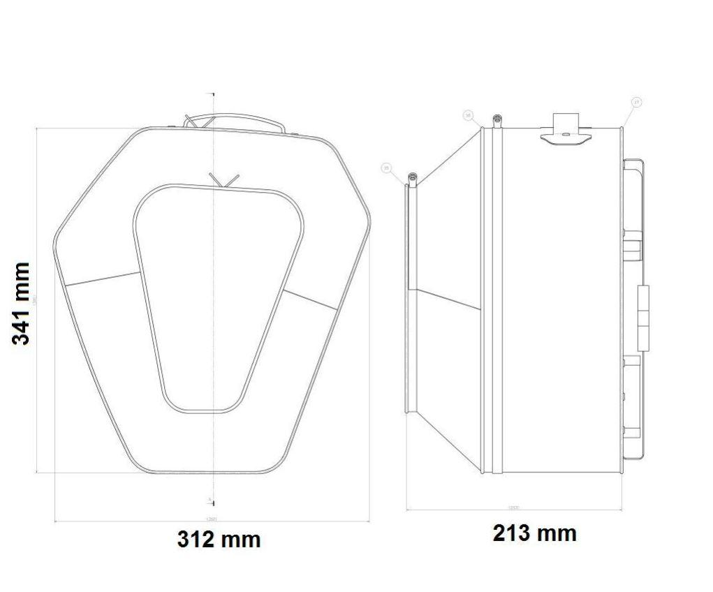 - Délka 312 mm, šířka 213 mm, výška 341 mm (jedna strana)