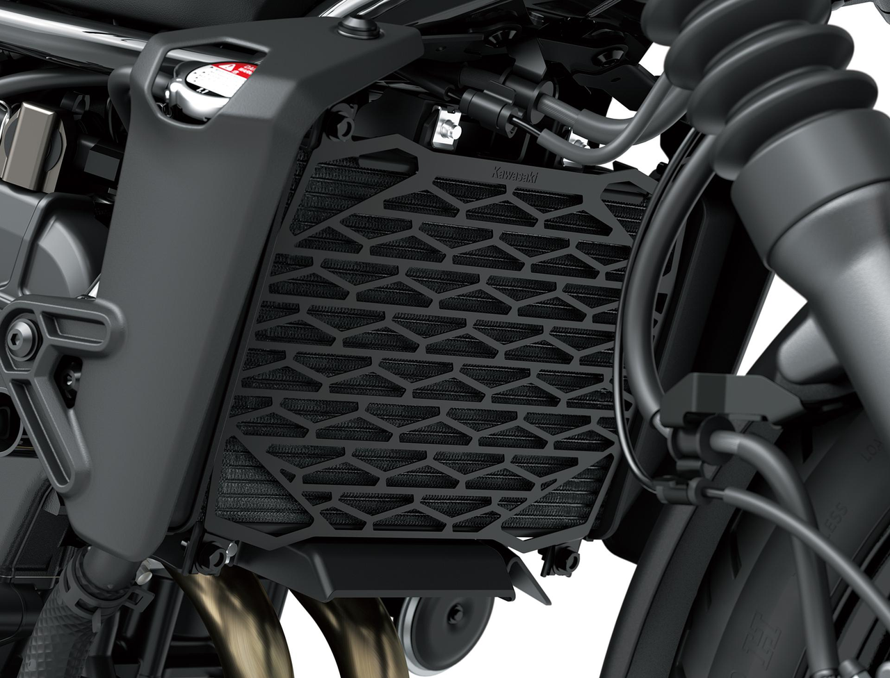 Stylový černý kryt chladiče chrání chladič před nečistotami z vozovky pomocí robustních nerezových krytů.